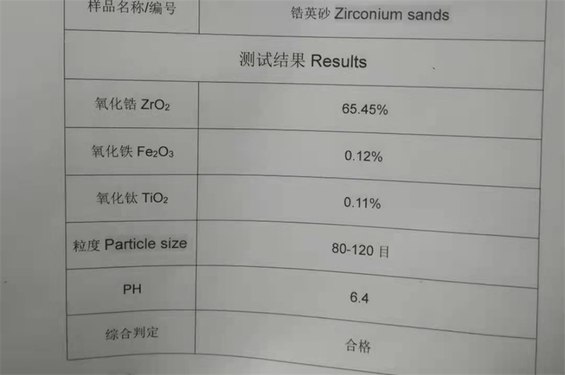 1. 產(chǎn)品介紹:鋯英砂(鋯英石)多與鈦鐵礦、金紅石、獨(dú)居石、磷釔礦等共生于海濱砂中,經(jīng)水選、電選、磁選等選礦工藝分選后而得到。其理論組成為:ZrO2:67.1%;SiO2:32.9%。純凈的鋯英砂為無(wú)色透明的晶體,常因產(chǎn)地不同、含雜質(zhì)的種類與數(shù)量不同而染成黃、橙、紅、褐等色,硬度7.8,比重4.6-4.71,折射率1.93-2.01,熔點(diǎn)為2550℃。